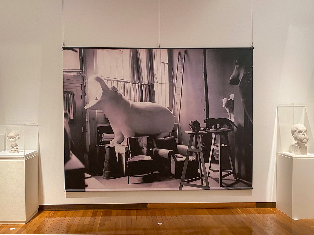 会場には、ポンポンを慕っていた彫刻家アンリ・マルティネによるポンポンの頭像も展示されています。 「動物は人間と同じだ」と語っていたポンポンは、穏やかな人柄と熱心な仕事ぶりで人と動物へ愛情あるまなざしを注ぎ続けました。