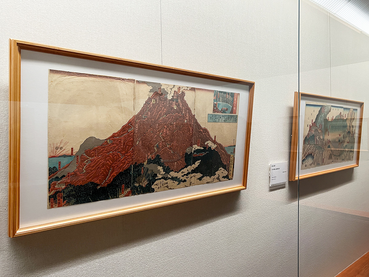 (左手前から)歌川貞秀《三国第一山之図 三まいつゞき》嘉永2~5年(1849~52)頃 / 歌川貞秀《大日本富士山地頂之図》安政4年(1857)