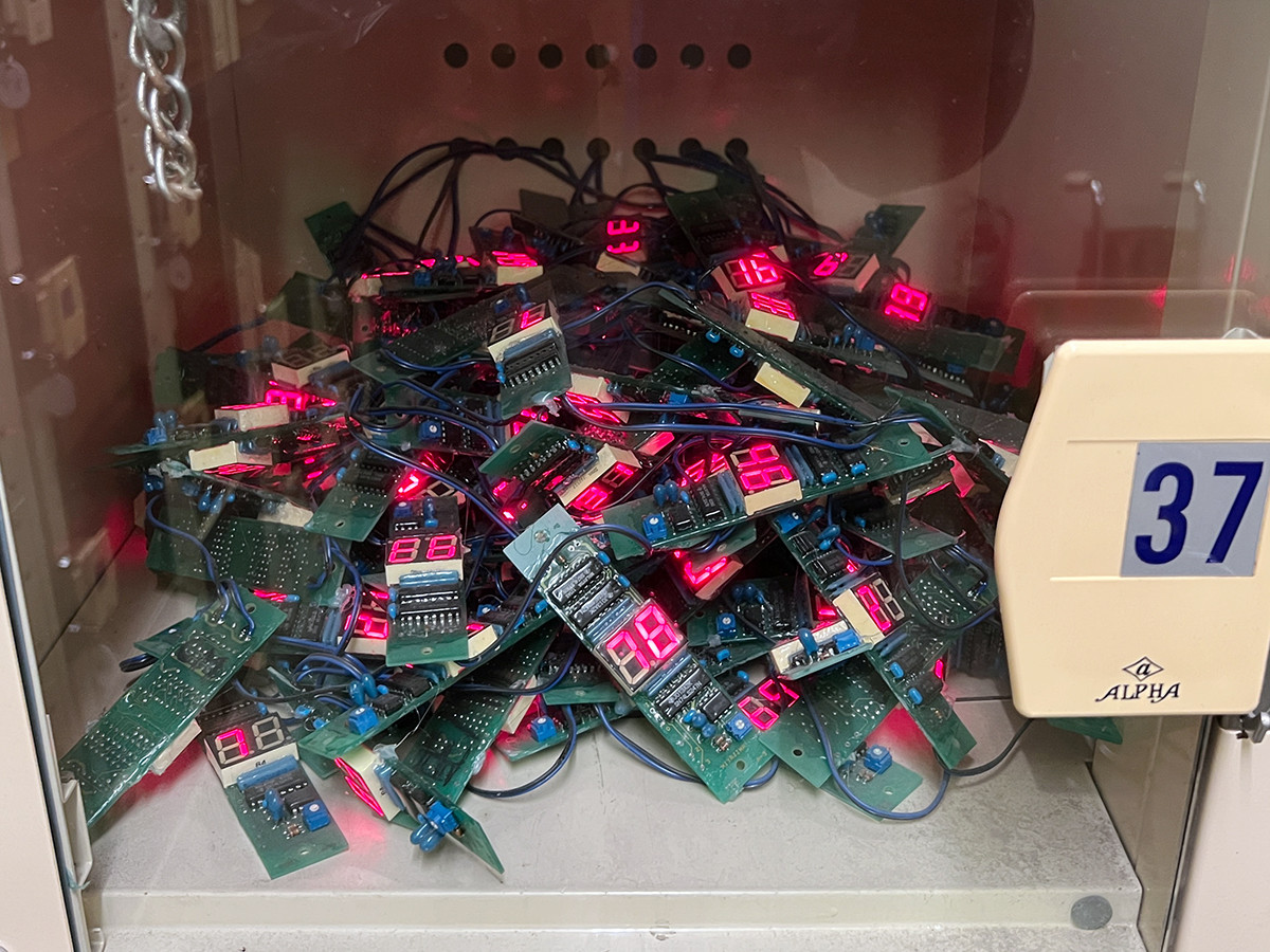 宮島達男《Number of Time in Coin-Locker》は、美術館のコインロッカーに設置された作品。1996年に行われたワークショップで、埼玉県民150人が好きな速度でデジタル・カウンターを設定しました。今でもコインロッカーの中でリズムを刻んでいます。