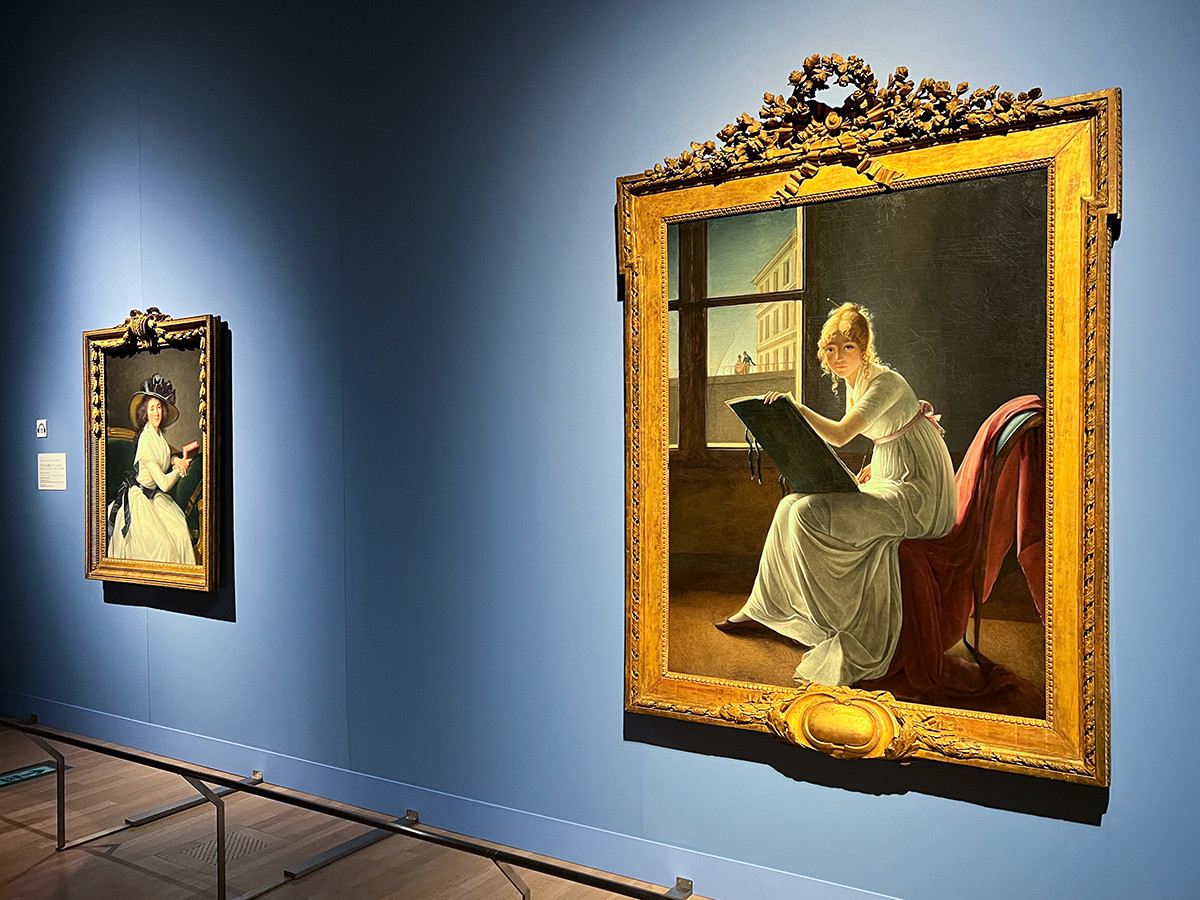 (左から)エリザベート・ルイーズ・ヴィジェ・ル・ブラン《ラ・シャトル伯爵夫人(マリー・シャルロット・ルイーズ・ペレット・アグラエ・ボンタン、1762-1848年)》1789年 ニューヨーク、メトロポリタン美術館 Gift of Jessie Woolworth Donahue, 1954 / 54.182 / マリー・ドニーズ・ヴィレール《マリー・ジョゼフィーヌ・シャルロット・デュ・ヴァル・ドーニュ(1868年没)》1801年 ニューヨーク、メトロポリタン美術館 Mr. and Mrs. Isaac D. Fletcher Collection, Bequest of Isaac D. Fletcher, 1917 / 17.120.204