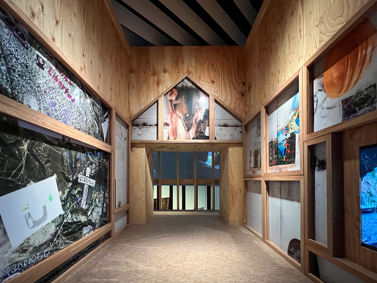 森美術館「Chim↑Pom展:ハッピースプリング」会場より 「ジ・アザ―・サイド(向こう側)」のセクション 《USAビジター・センター ―モデルユニット―》(「ジ・アザー・サイド」プロジェクトより)(2017/2022年)