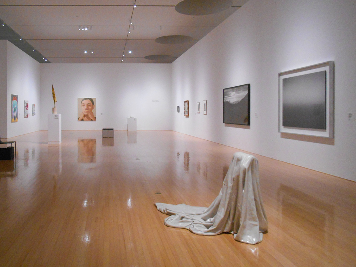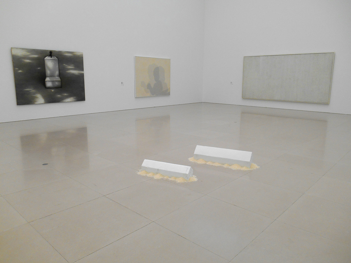 2階の展示室には、広々とした空間にモノクロームの作品が並んでいます。全体的にひんやりとした印象の作品が多く、例えば左側の作品のタイトルは≪Water Fountain≫(噴水)ですが、1階で見た作品の影響もあり、墓標に見えてしまいます。