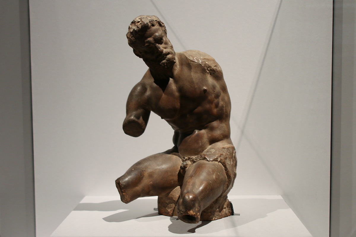 お目当ての彫刻2点は、第2章「ミケランジェロと男性美の理想」。階段を下がった展示室で、ドラマチックに登場します。