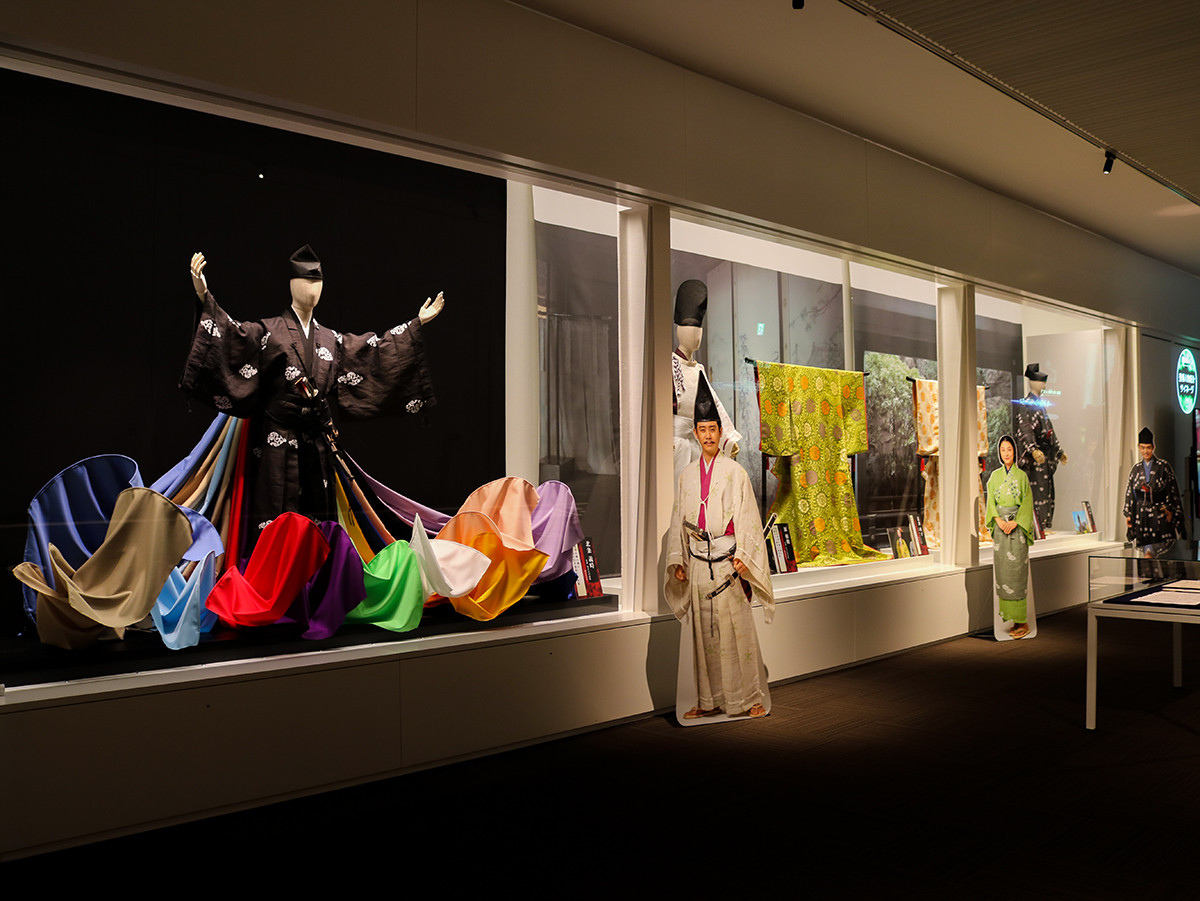 出演者の衣装や、実物の小道具が等身大パネルとともに展示されています。着用時の映像も流れており、出演シーンを思い返しながら記念撮影すれば、共演気分を味わえるかも?