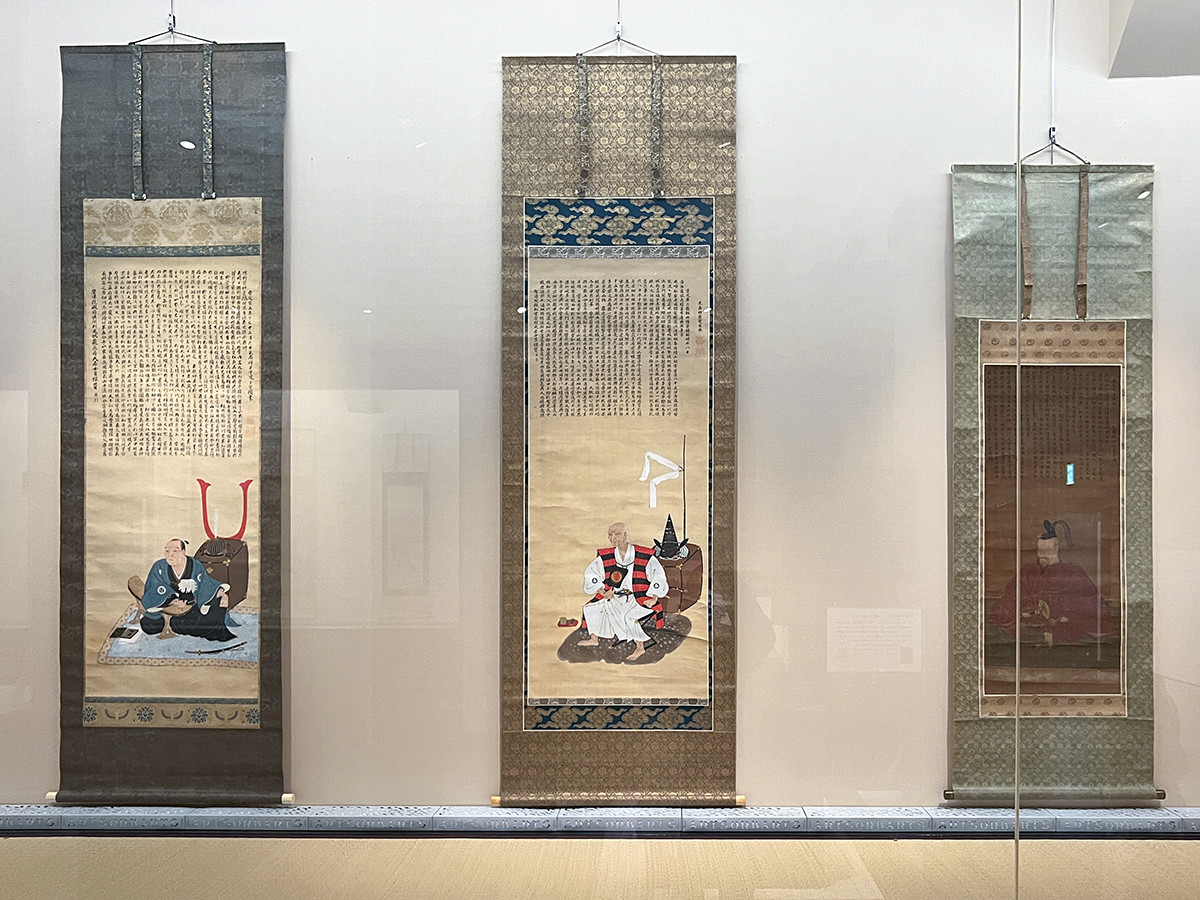 (左から)英中玄賢賛《松井寄之像》延宝5年(1677) / 霊叟玄承賛《松井興長像》寛文3年(1663) / 以心崇伝賛《松井康之像》慶長17年(1612)すべて松井文庫蔵