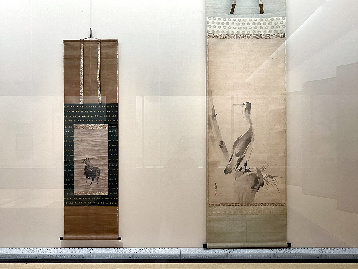 (左から)宮本武蔵筆《野馬図》江戸時代(17世紀)松井文庫蔵 / 重要文化財 宮本武蔵筆《鵜図》江戸時代(17世紀)永青文庫蔵(熊本県立美術館寄託)