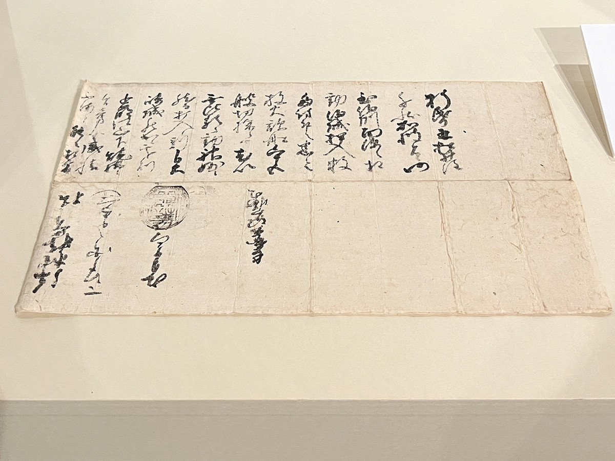 重要文化財《織田信長黒印状》は、細川藤孝に宛てた手紙です。天正9年、康之は丹後水軍を率いて、秀吉の因幡鳥取城攻めを支援。毛利を相手に大きな戦果をあげ、信長は「比類なき働き」と激賞しています。