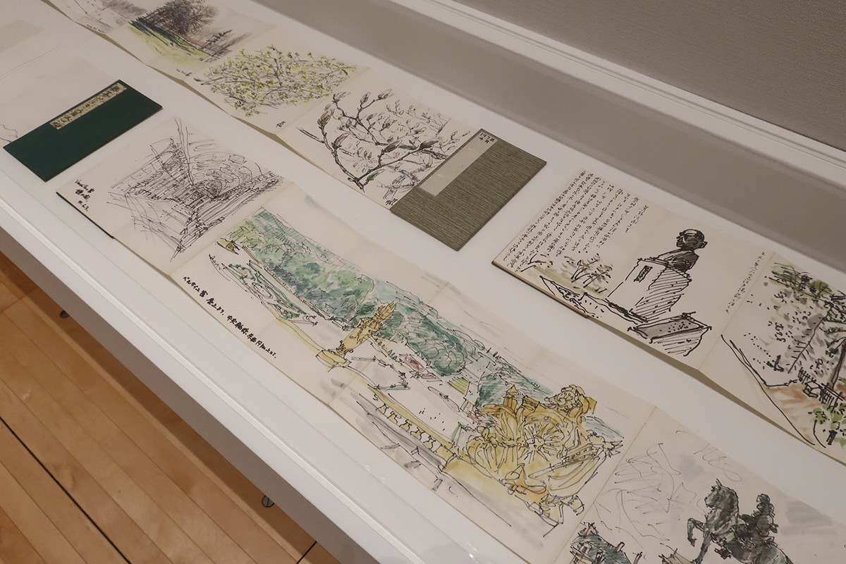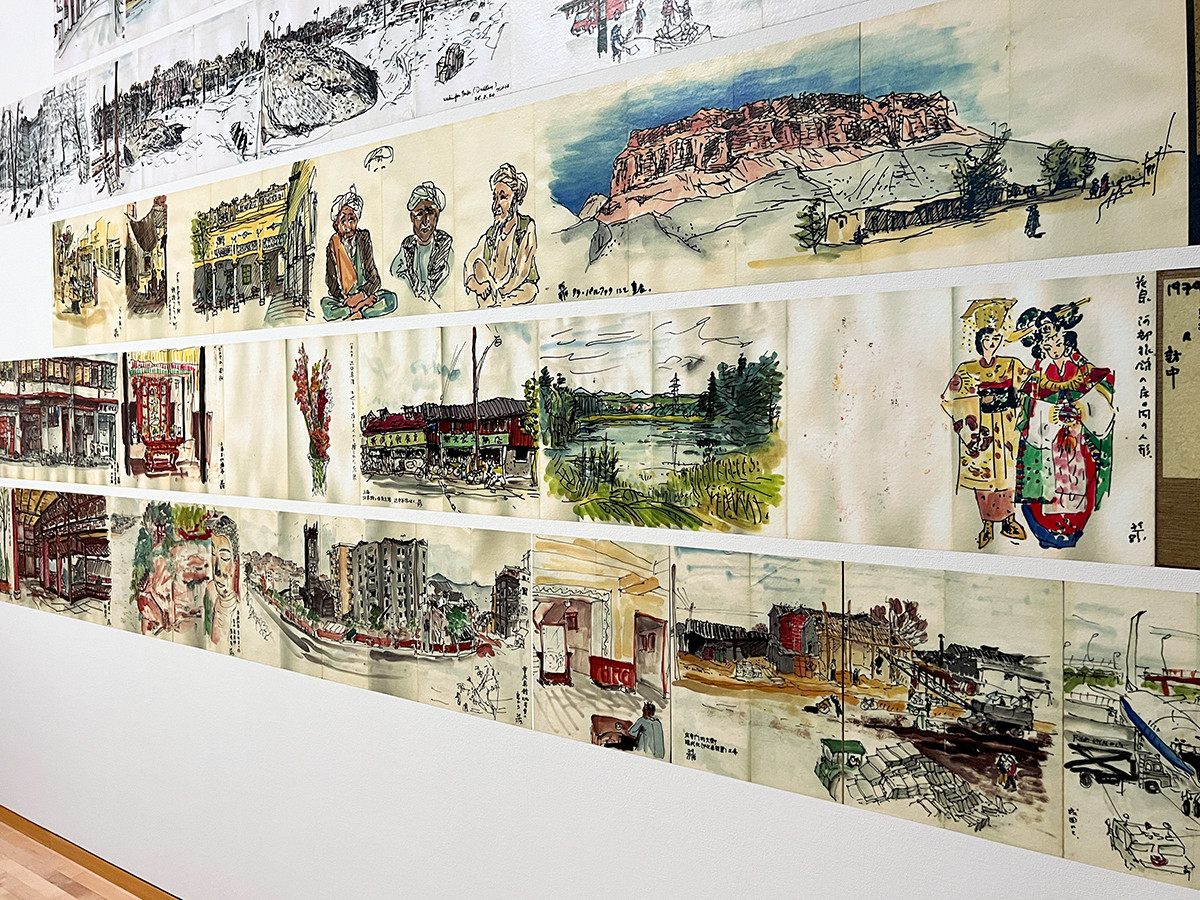 吉阪が“パタパタ”と呼ぶ屏風折りの集印帖は、現在国内で描いたものが64冊、海外のものが76冊遺されています。
