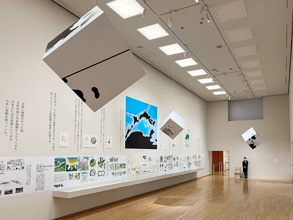 多彩な活動を示すように、膨大な資料に溢れた展覧会。デザイン性豊かな会場構成も見ものです。