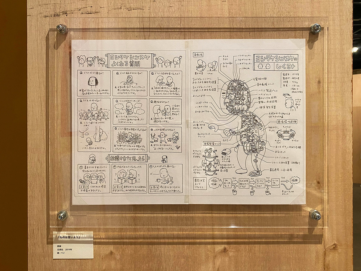 原画サイズが小さく、色をつけることも苦手だったため、絵本の依頼を遠慮していたこともあったというヨシタケ氏。それでも実現できることはあるというメッセージも会場には込められています。