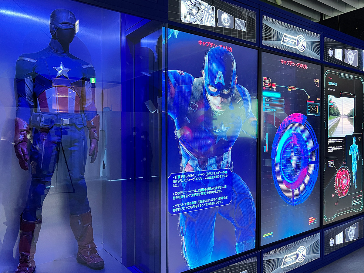 自分の姿が映し出され、アイアンマンの姿に。体験型の展示で楽しさ満載!