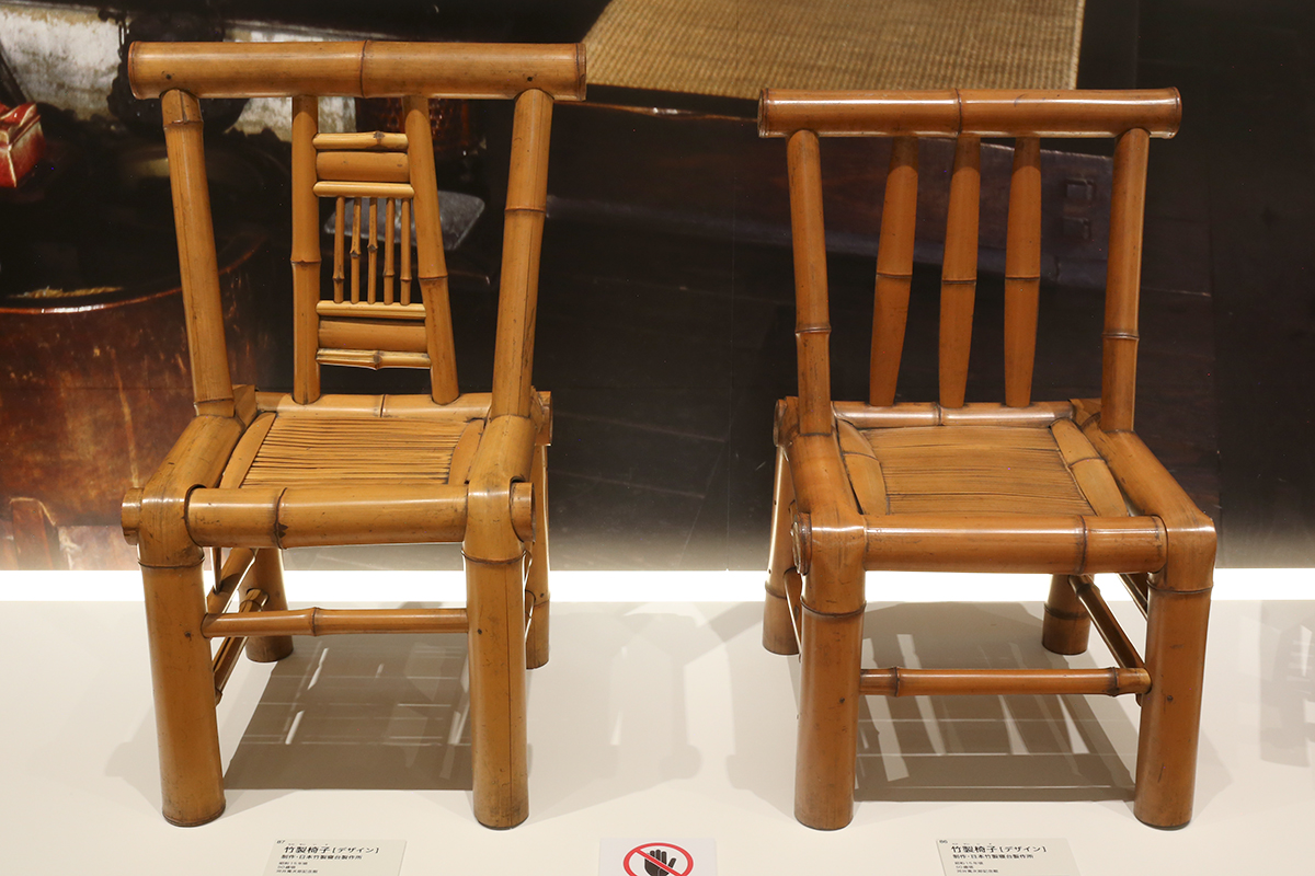 (左から)《竹製椅子》1940年頃 デザイン:河井寬次郎 制作:日本竹製寝台製作所 河井寬次郎記念館蔵 / 《竹製椅子》1940年頃 デザイン:河井寬次郎 制作:日本竹製寝台製作所 河井寬次郎記念館蔵
