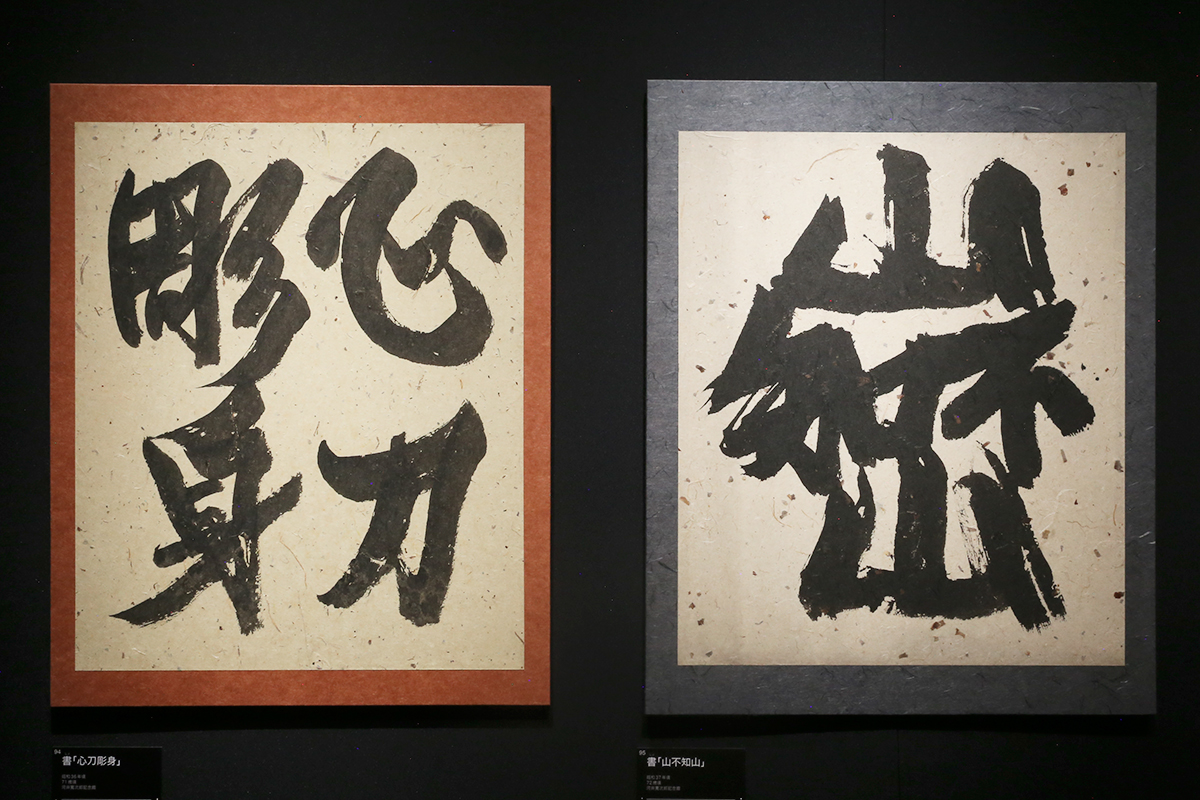 (左から)《書「心刀彫身」》1961年頃 河井寬次郎記念館蔵 / 《書「山不知山」》1962年頃 河井寬次郎記念館蔵