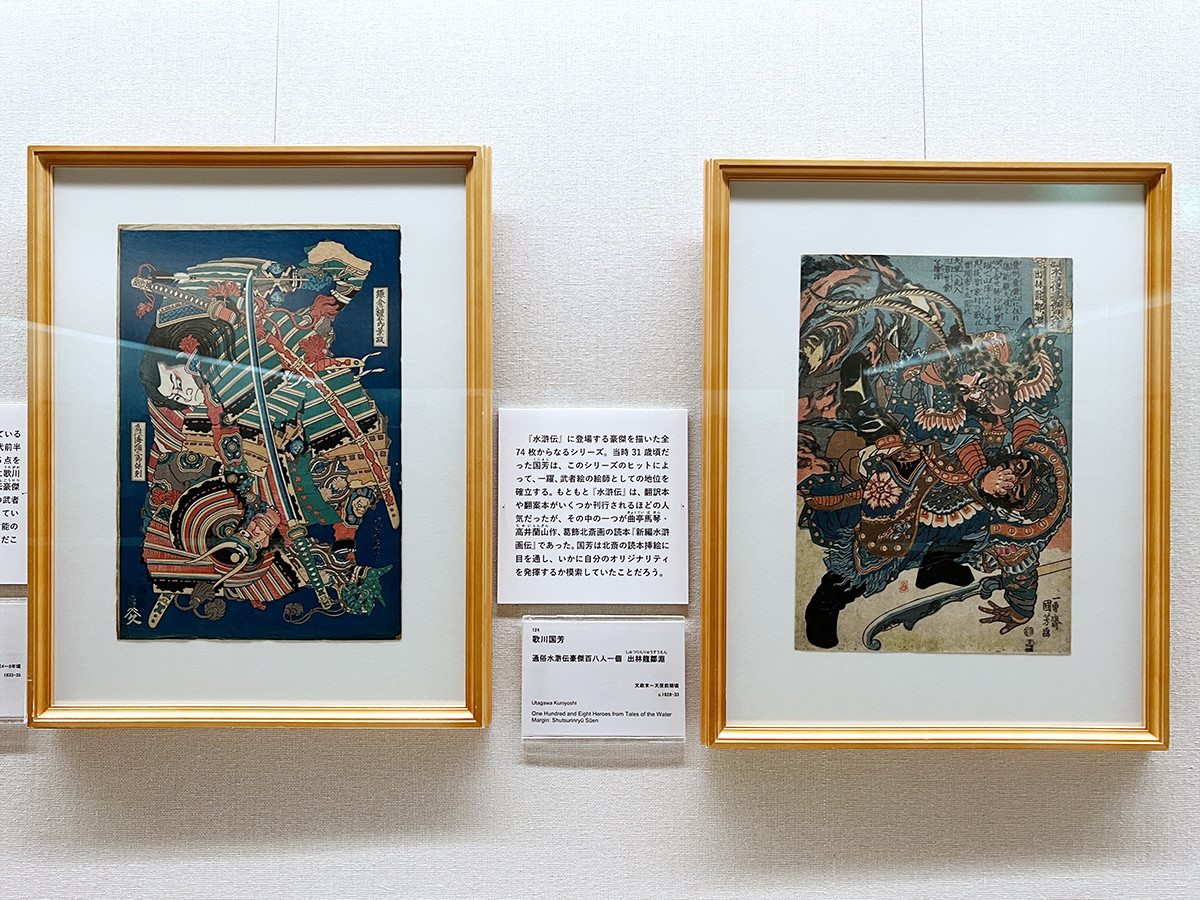 武者絵といえば「通俗水滸伝豪傑百八人之一個」で地位を確立した歌川国芳。国芳も北斎の作品を見ながら、自らの作風を模索していったと思われます。