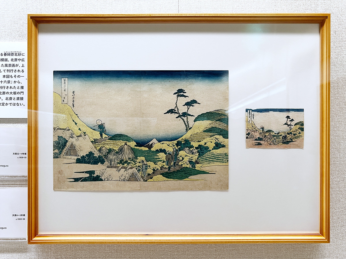 (左から)葛飾北斎《冨嶽三十六景 下目黒》天保元〜4年頃 / 春婦斎北妙《冨嶽三十六景 下目黒》天保4〜5年頃