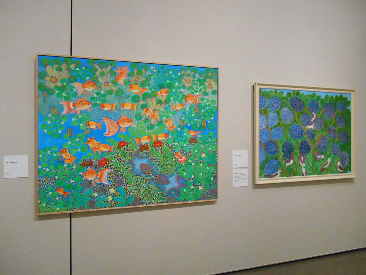 会場風景 左《金魚 大和錦の産卵》1992 個人蔵