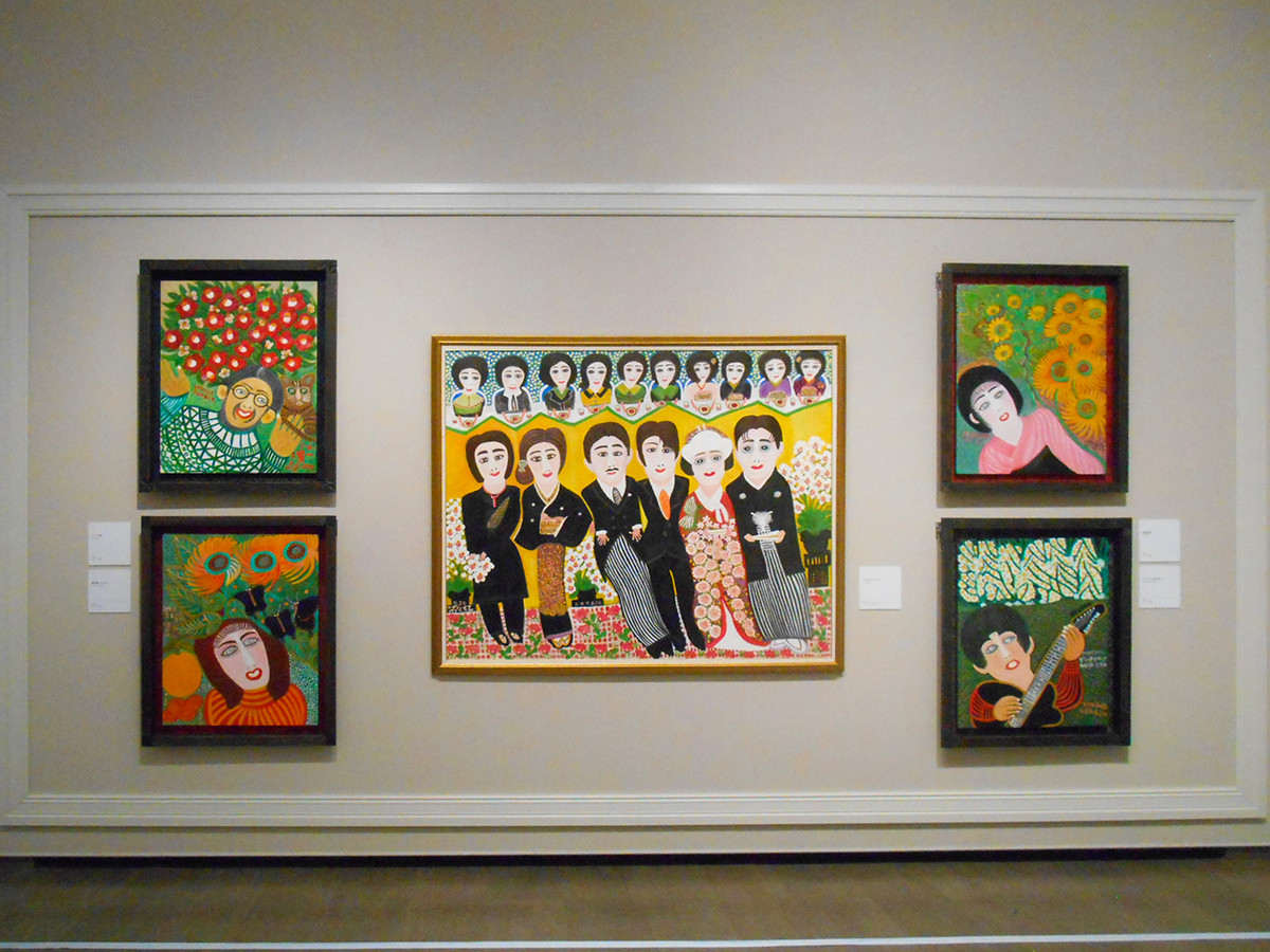 《ミアのケッコンシキ》を中心に家族の肖像画が白いフレームで囲まれ、まるで一つの作品のように見えます。岐阜県美術館独自の展示の工夫だそうです。