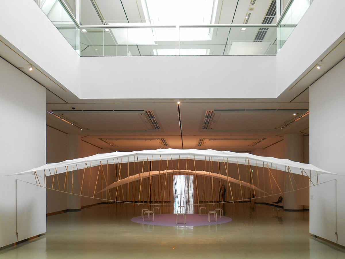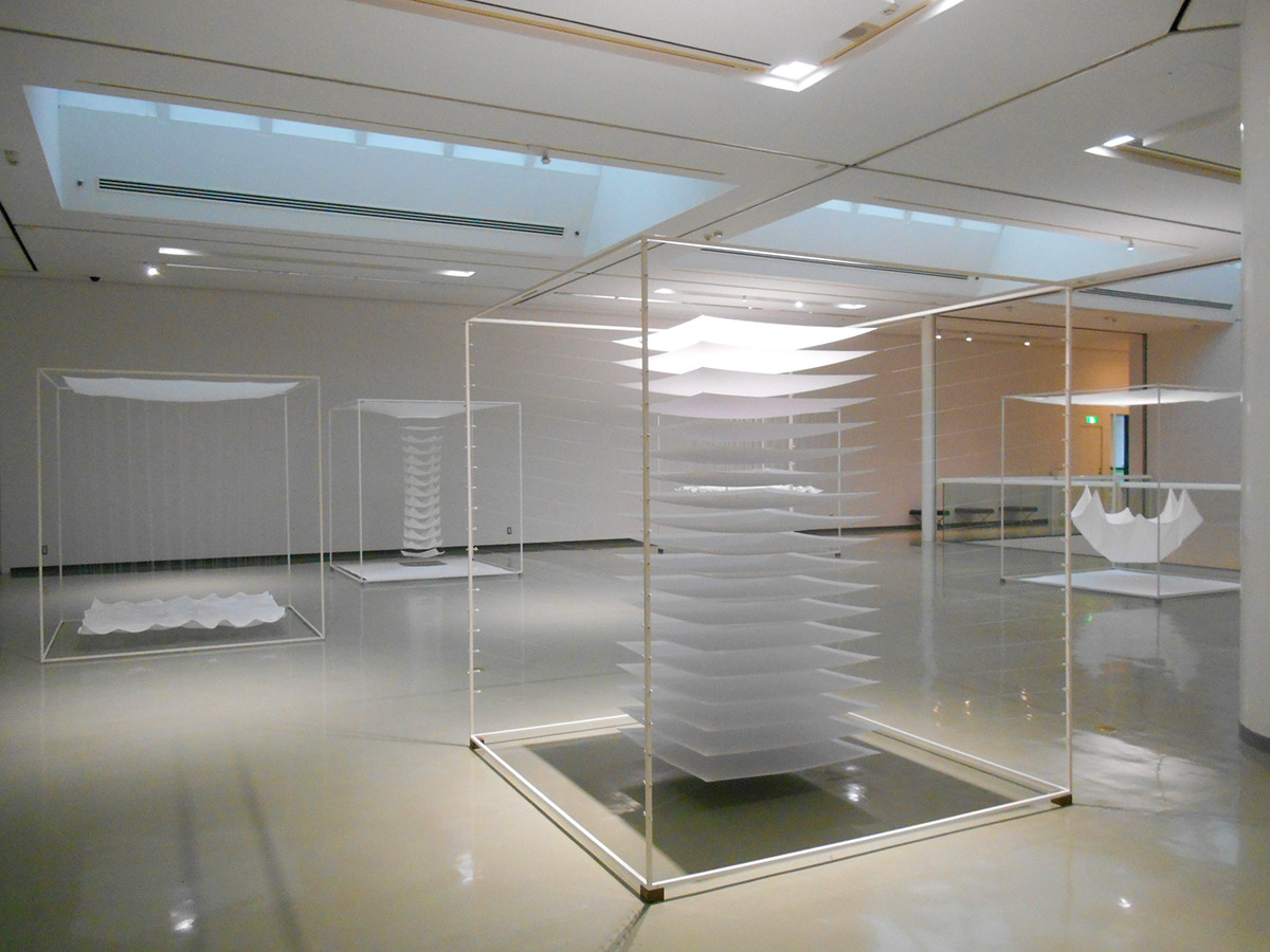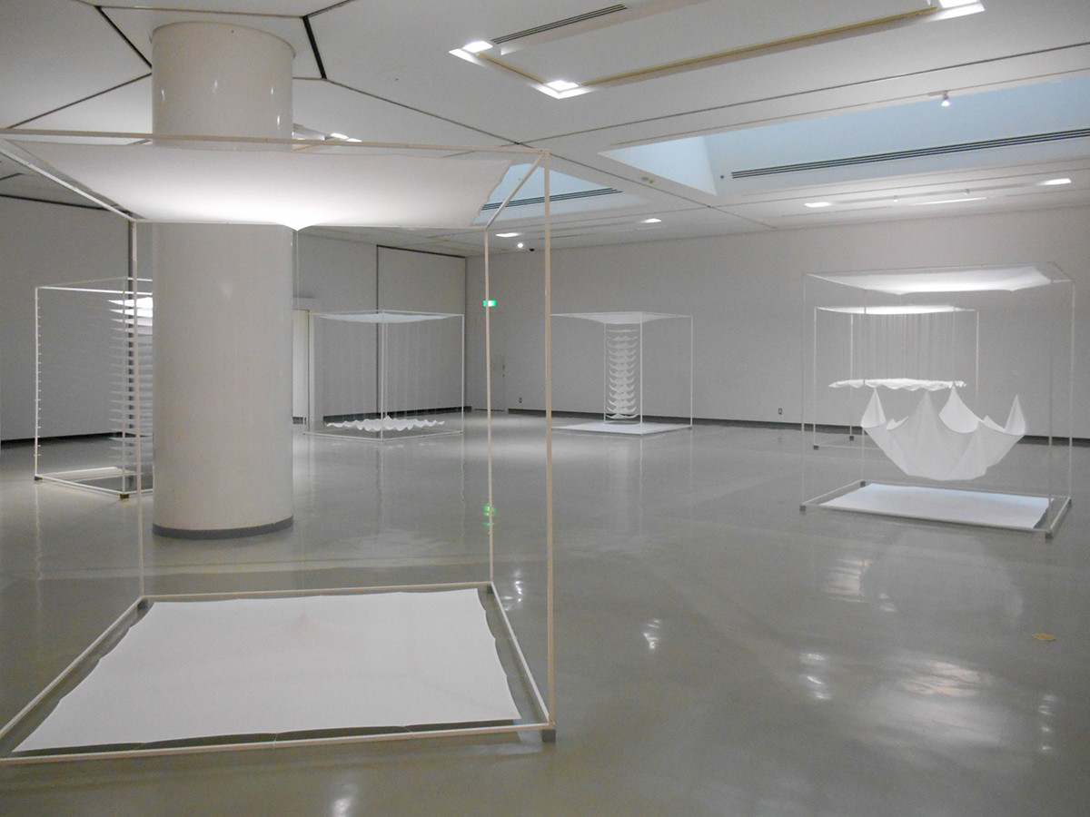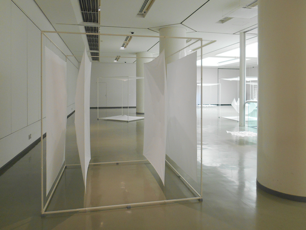 本展では1968年に発表されたデビュー作の〈白い布による空間〉シリーズから、2022年に制作された〈Cloth Behind〉の新作までを展示しています。 なかでも、〈Navigation〉シリーズは、「アーチ」、「フライト」、「レベル」の3種類すべてが揃う貴重な機会です。