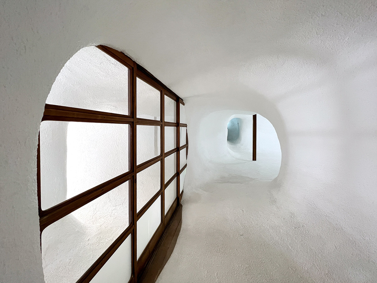その迷路にある家屋で、家の中がさらに迷路のようになっているのは《迷路のまち~変幻自在の路地空間~》。家の外壁が室内に広がり、建物内は洞窟のよう。文句なしに楽しめます。