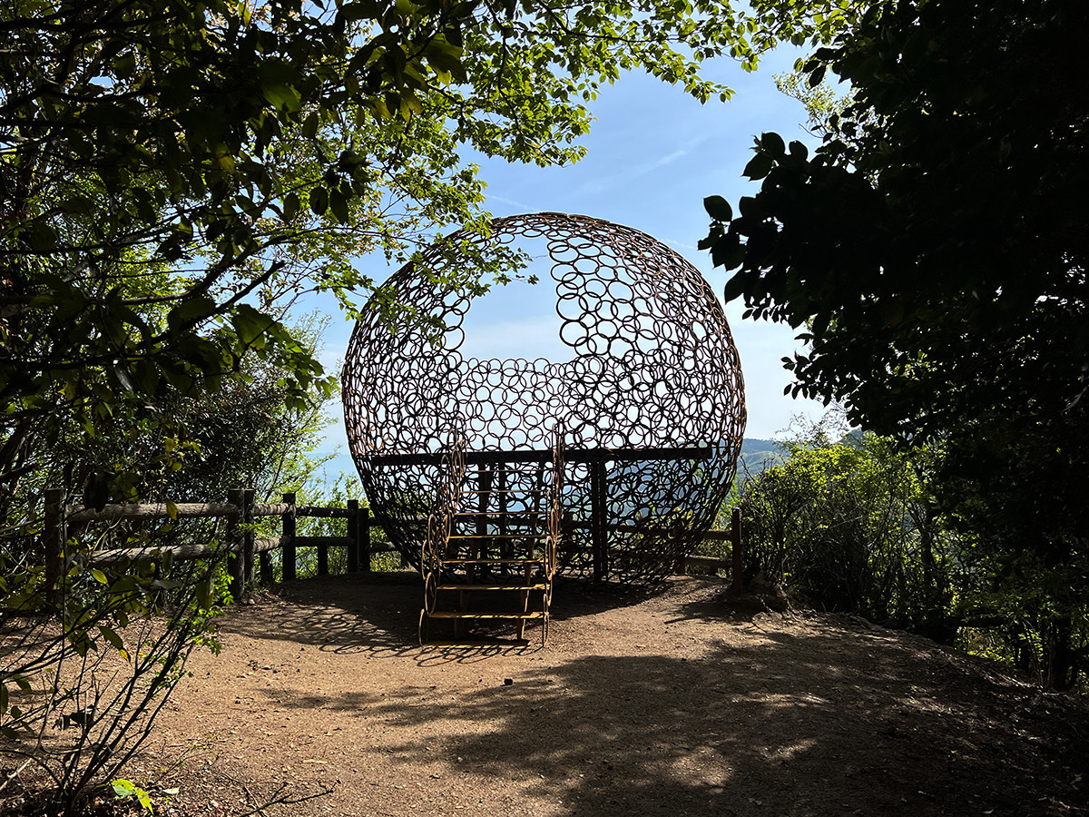 行程的に無理を押して小豆島に来たのは、今年の瀬戸芸の新作であるこの作品が見たかったから。鉄の作品で知られる青木野枝が、球体の見晴台をつくりました。