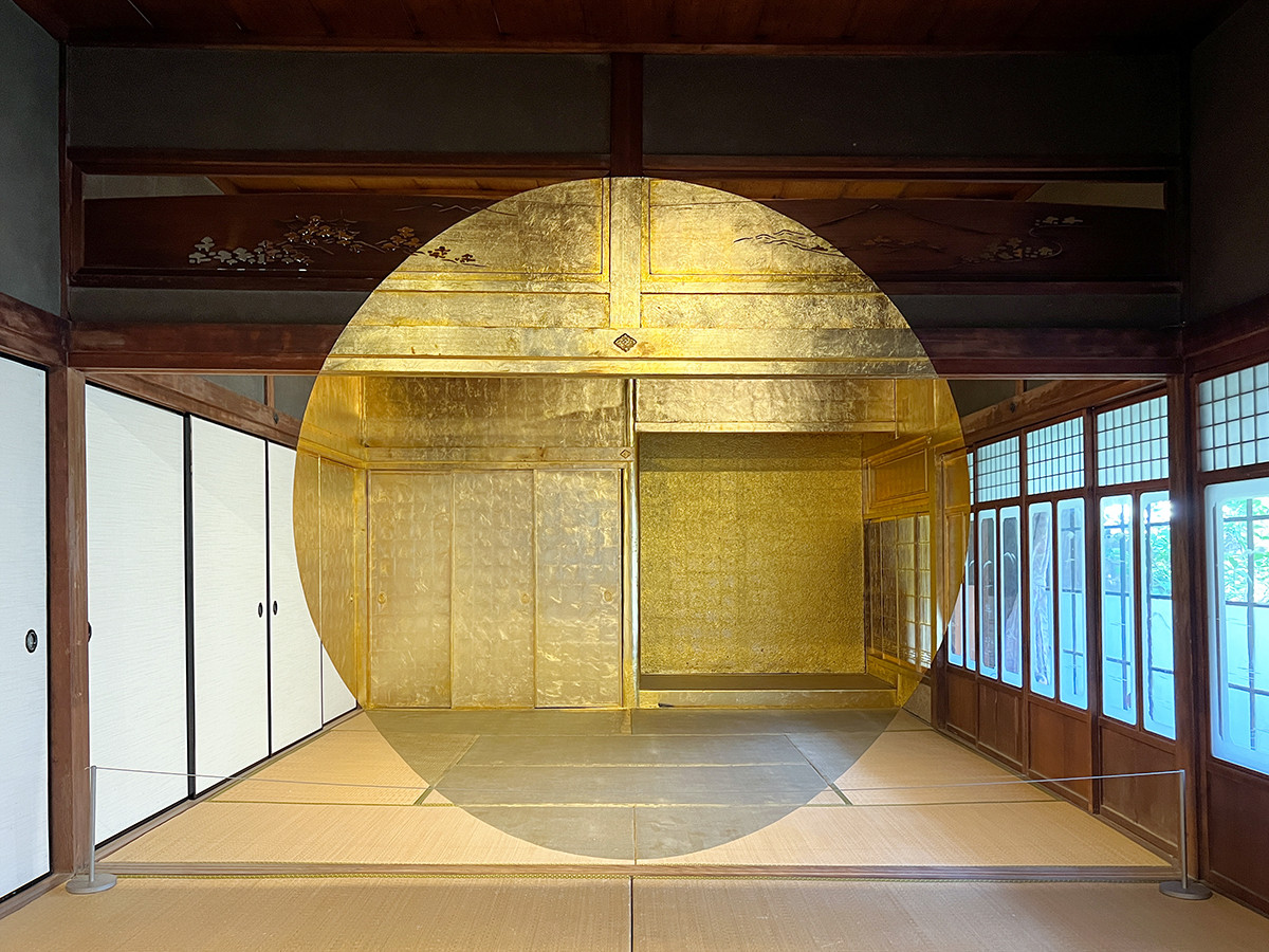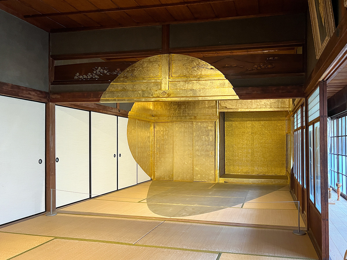 《ジョルジュ・ギャラリー》は、古民家に幾何学模様が描かれた作品です。特定の一点から眺めた時だけ、金の正円が見えます。映える写真が撮れるので、インスタなどで目にした方が多いかも知れません。