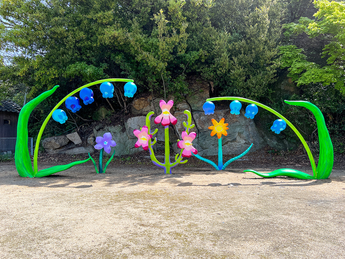 島の盆踊りが行われる“ちびっこ広場”に設けられた《INUJIMAアートランデブー》は、今年の瀬戸芸の新作です。春会期には「フラワーフェアリーダンサーズ」が設置され、今後も発展していきます。