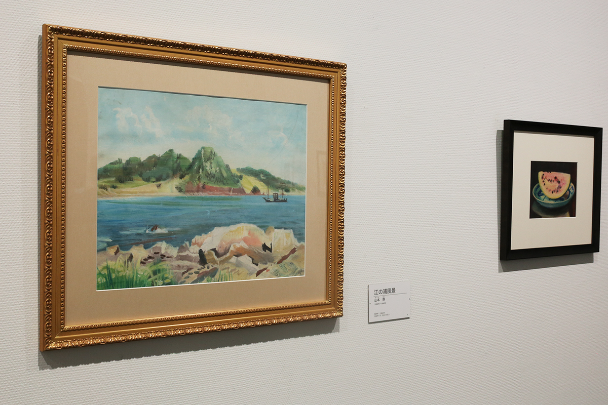 (左から)山本鼎《江の浦風景》1934年 / 山本鼎《西瓜》制作年不明