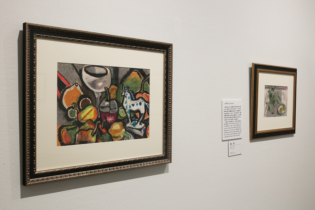 (左から)朝井閑右衛門《静物》制作年不明 / 小川マリ《静物》制作年不明