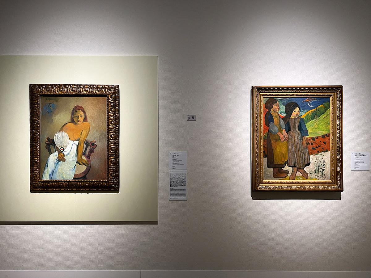 (左から)ポール・ゴーガン《扇を持つ娘》1902年 フォルクヴァング美術館 / ポール・ゴーガン《海辺に立つブルターニュの少女たち》1889年 国立西洋美術館 松方コレクション