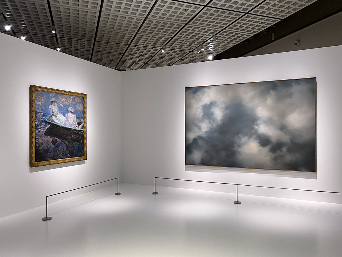 モネとリヒターの作品が並ぶこの一角は、とても印象的です。河で舟遊びに興じる女性たちを描いたモネに対し、リヒターは写真にもとづいて雲を描きました。