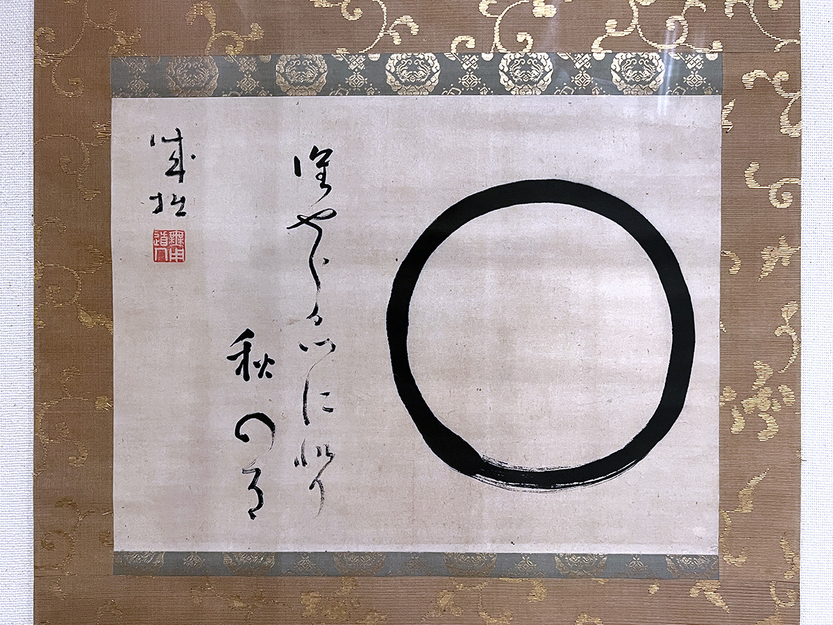 円相は悟りの象徴。賛文から、誰にでも平等に仏性(ぶっしよう:仏としての性質)が備わっていることを表したものと思われます。
