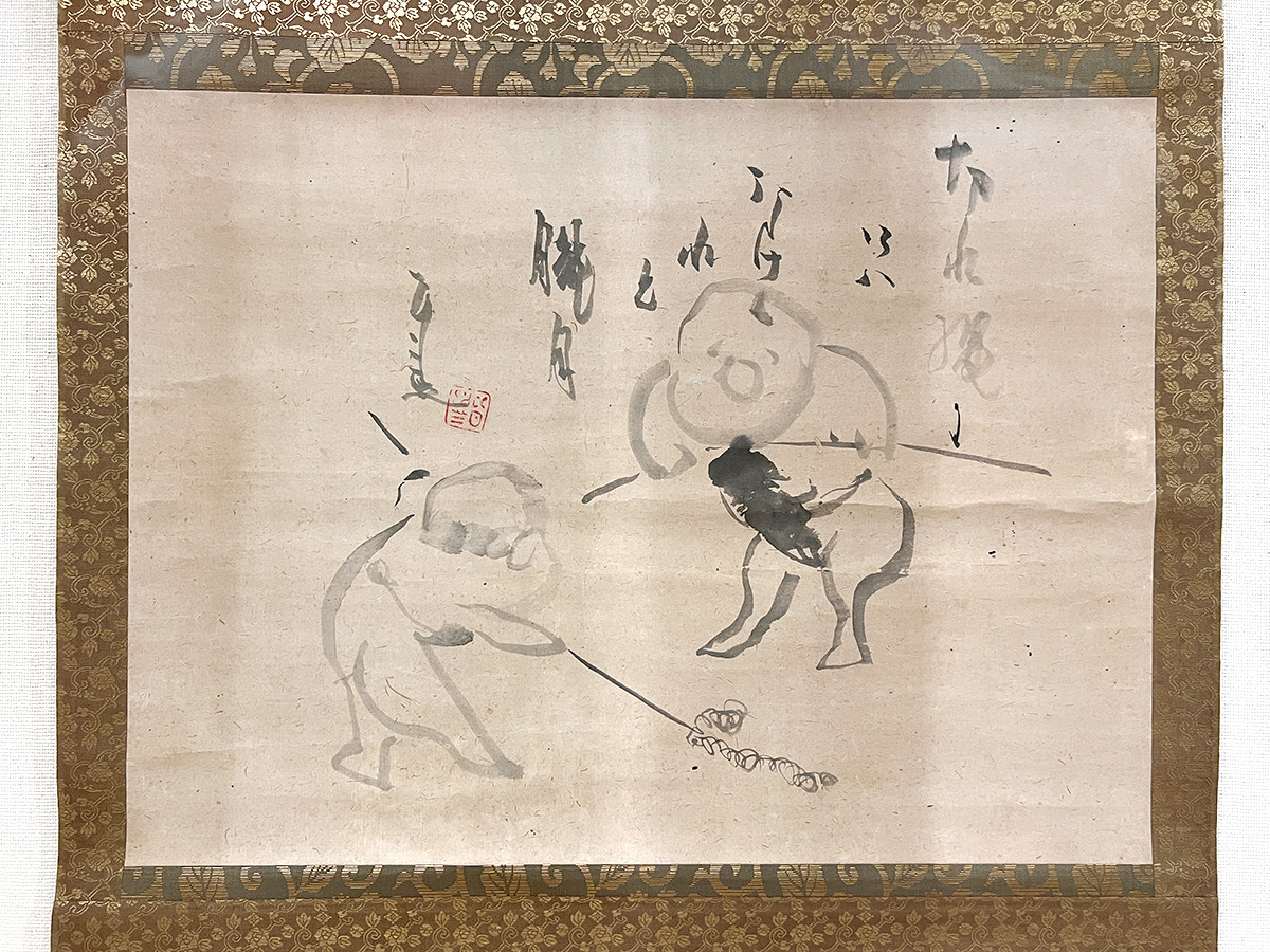 当初は襖絵だった作品で、現存する仙崖作品唯一の襖絵という貴重な作例です。