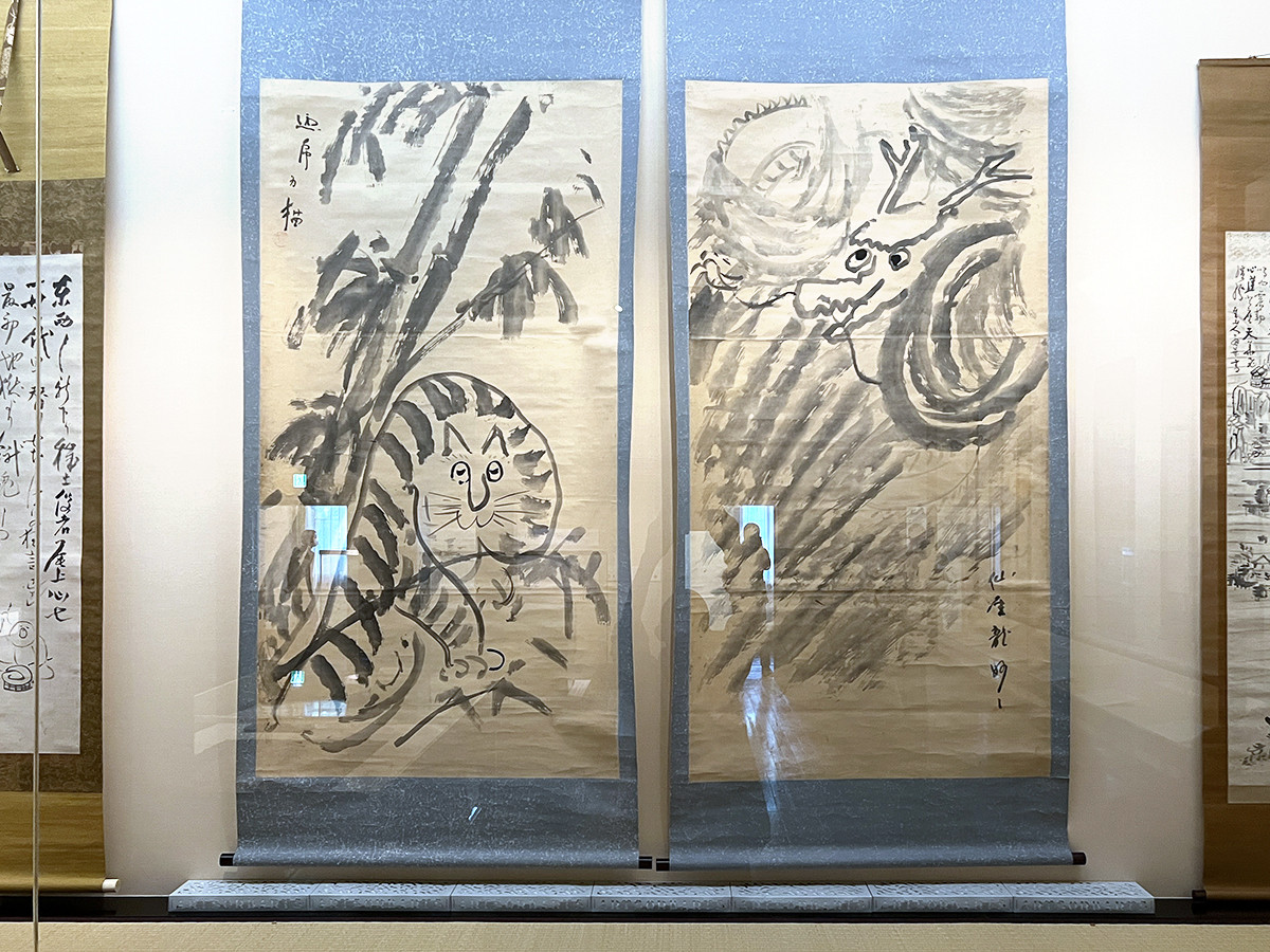 こちらは、なんとものんきな龍虎図。一般的には虎が龍を迎え撃つように対峙する姿で描かれますが、本作の虎は穏やかな表情です。