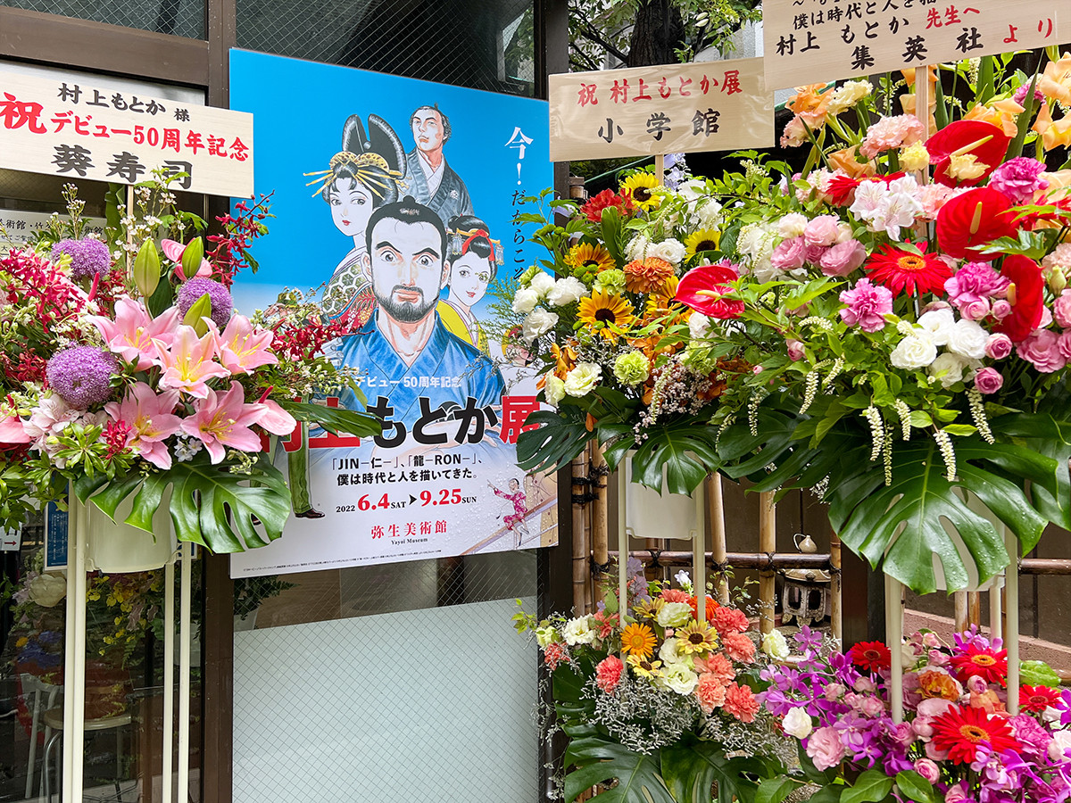 弥生美術館「村上もとか展」入口前には花がいっぱい!