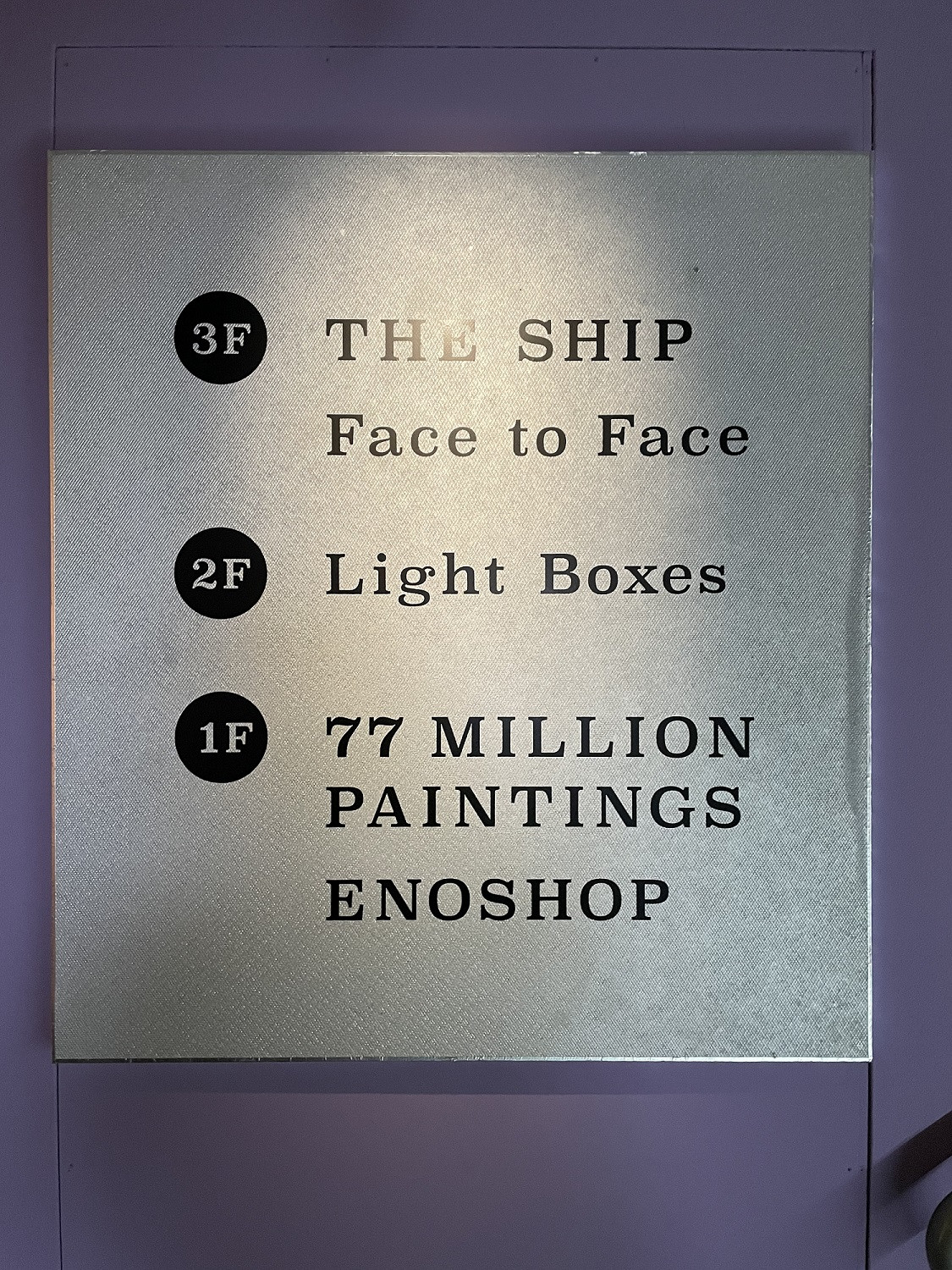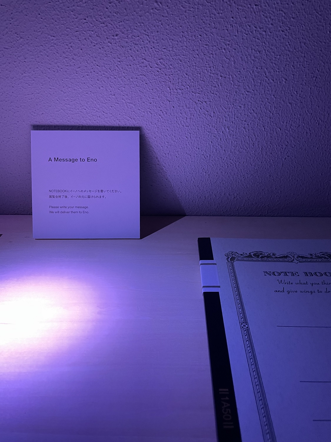 4か所に分かれた展示室だけではなく、建物全体に《The Lighthouse》(日本初公開)が流れています。展示室から展示室への移動間も、イーノの世界観から覚めることなく時間を過ごすことができます。 会場入口で配布されるリーフレットの裏面にはこんな言葉が書かれています。