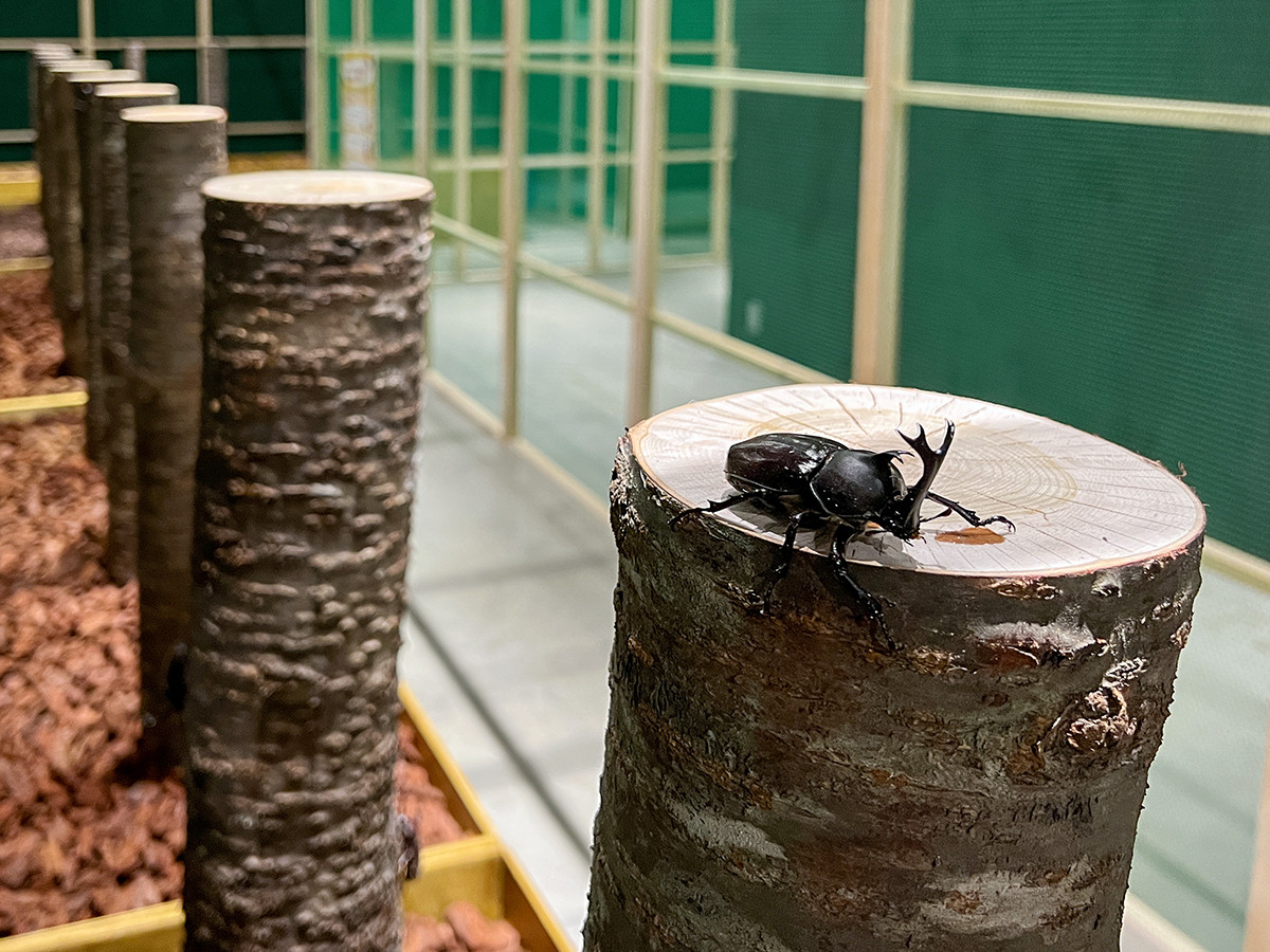 ヘラクレスオオカブトなど人気昆虫を生体展示。実際の昆虫に触ってみよう