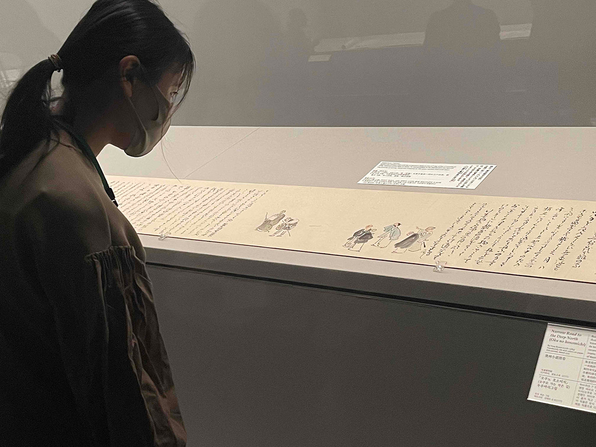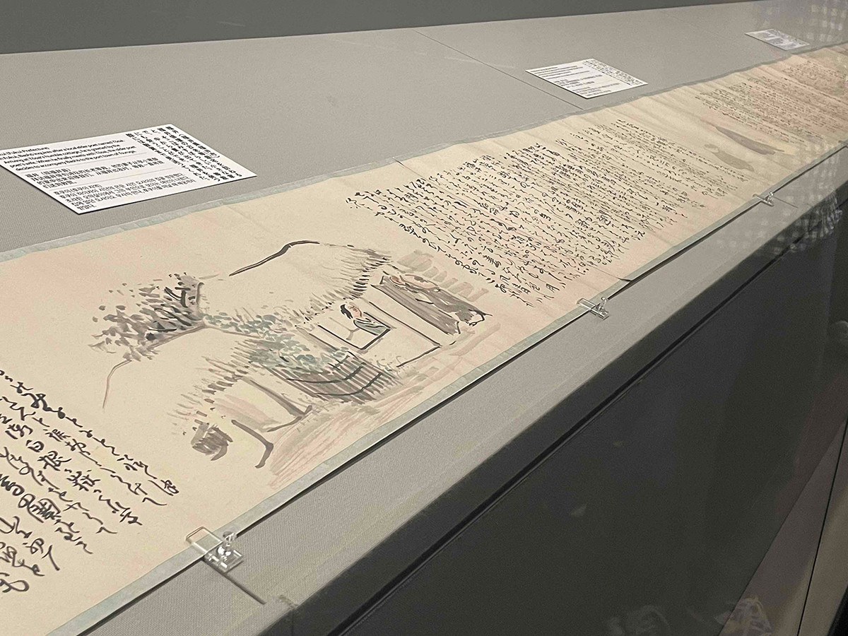 今回、新発見された図巻(安永6年)の他、京都国立博物館所蔵の重要文化財「奥の細道図巻」(安永7年)、横井金谷筆の模本(江戸時代)が展示されています。