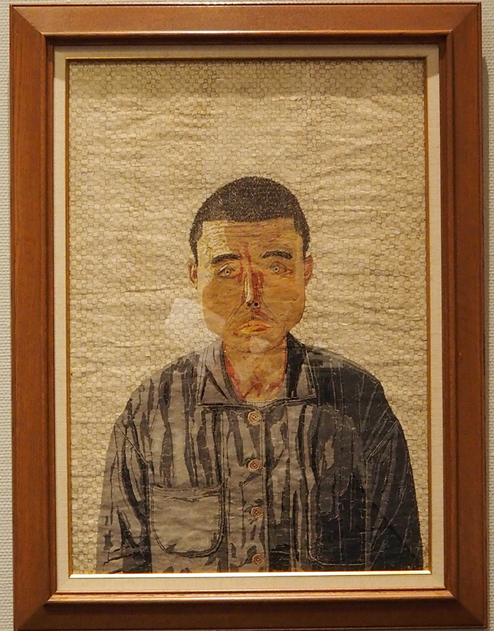《自分の顔》貼絵 1950年 見ごたえのある作品。近づいたり離れたりしながら味わってほしい。