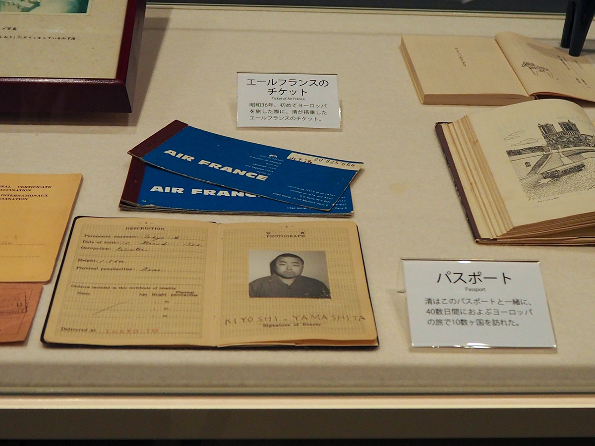 展示資料の一部 パスポートには「Painter(画家)」と記されている。