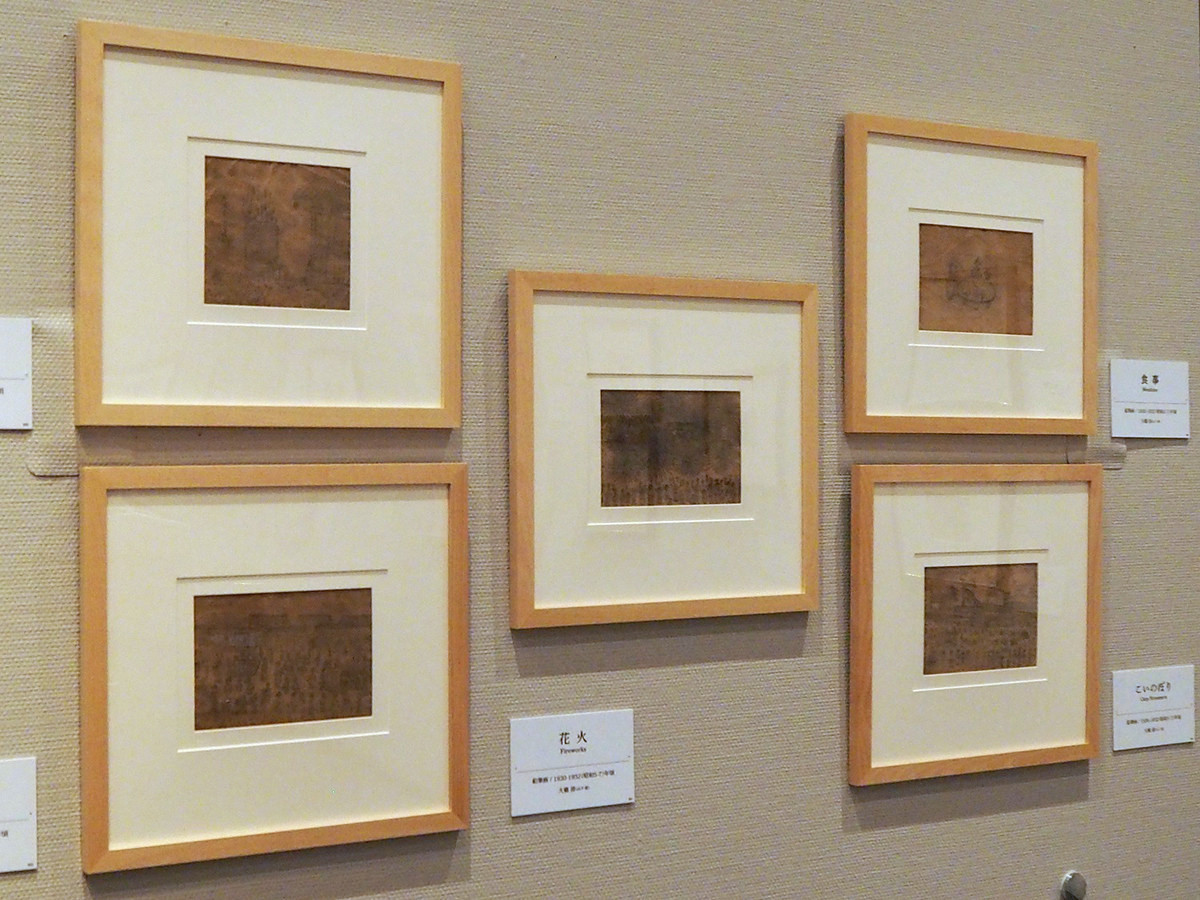 まず驚くのは8~10歳の頃に描いた鉛筆画。家族との食事風景やこいのぼりなど、細かな描写は、のちに私たちが知る彼の貼絵を彷彿させます。幼いころから絵を描くことに長けていたことも一目瞭然です。
