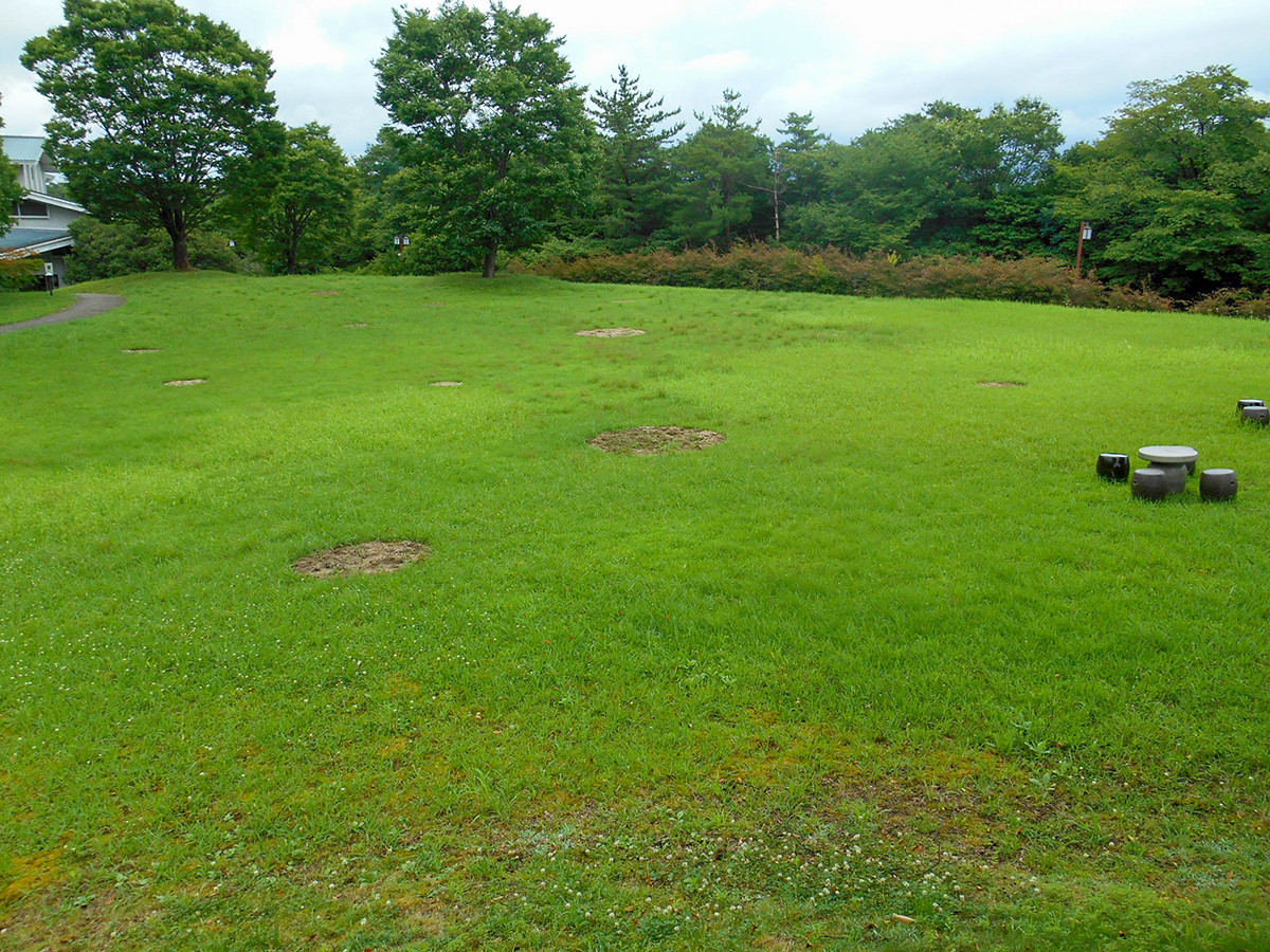 草地に散在するむき出しの土の部分、これも作品です。陶芸作品の素材は土ということを、再認識させてくれます。陶芸のミニマルアートというところでしょうか。