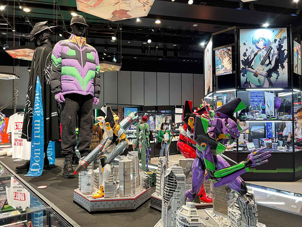 会場最後の公式ストア「EVANGELION STORE」では、最新のアイテムや本イベント限定商品はだけでなく、往年の人気商品の復刻、幅広いカテゴリーの商品が過去最大級の規模で用意されています。