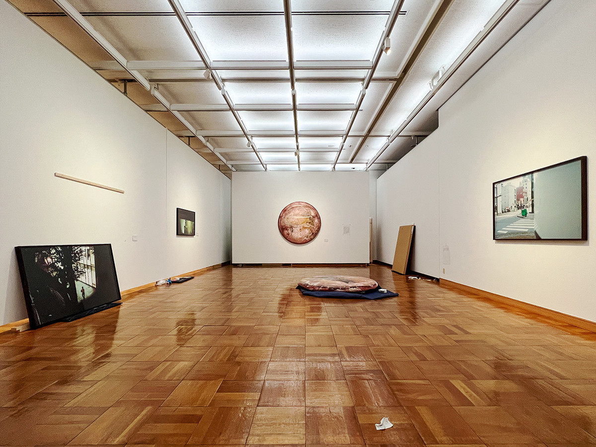 展覧会は3章構成。1章「美術館をときほぐす」では、中﨑透、ミヤケマイ、清水裕貴、津田道子の作品を展示。普段注目される「作品」以外で、あまり意識されない側面から美術館を見つめ直します。