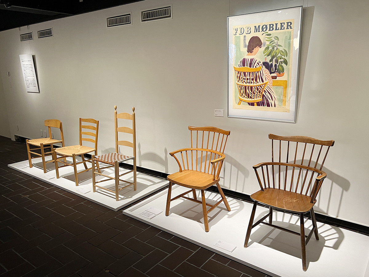 展覧会の第1章は「デンマークの椅子」。面積は九州ほど、人口は600万人足らずと小さなデンマークですが、教育・医療・福祉などの社会システムが発達し、充実した日常生活が優れた家具デザインを生んできたといえます。