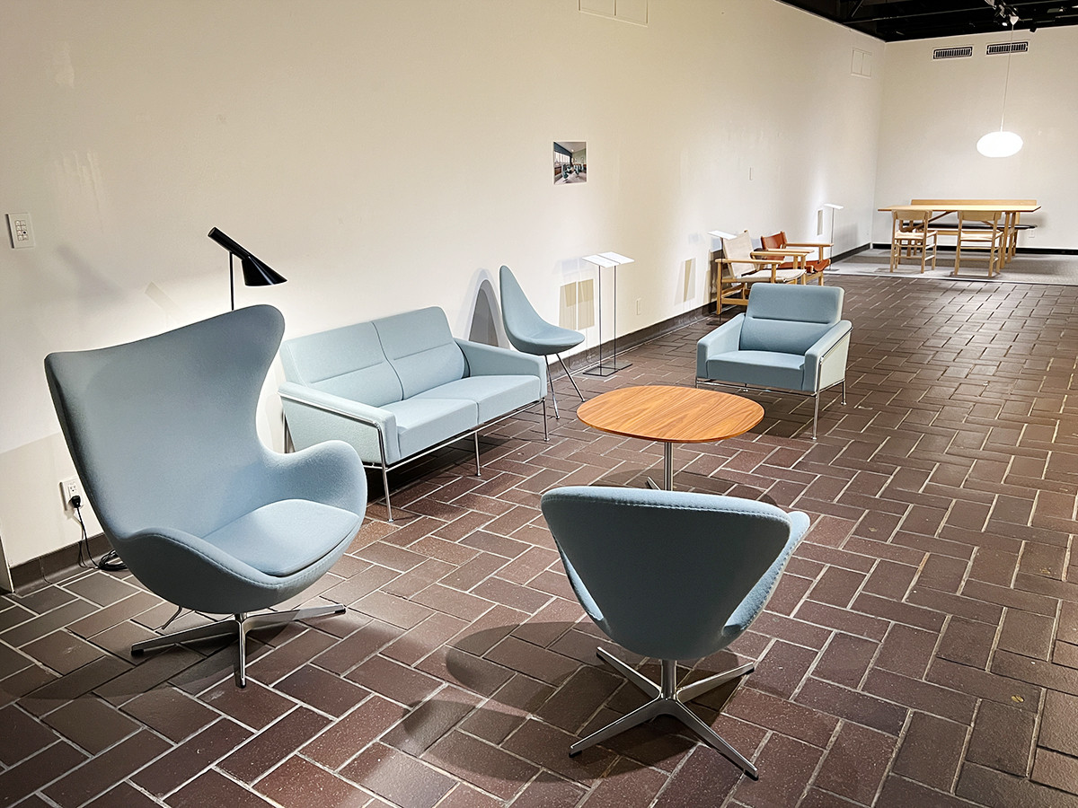 クリントやヴァンシャーがリデザインした椅子から、モーエンセン、ヤコブセン、ウェグナー、そしてフィン・ユールらによる椅子などがずらり。照明器具もデンマークのデザインです。