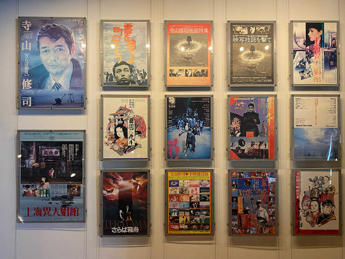 寺山が監督した映画のポスター。『草迷宮』で主演した俳優の三上博史氏は、寺山を慕い今なお記念館にきて寺山の歌謡曲や朗読劇を公演しています。