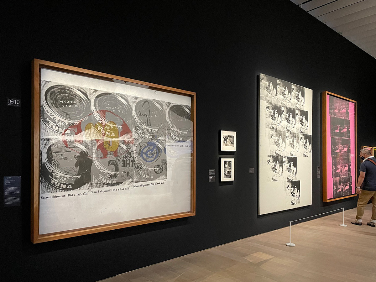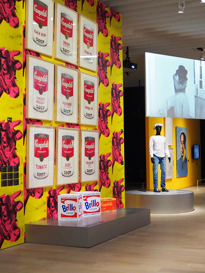 展示の中盤には、よく知られるウォーホルの作品がずらりと並んでいます。ブリロ箱、キャンベルスープに有名人の肖像画シリーズ。まさに“ウォーホル”です。