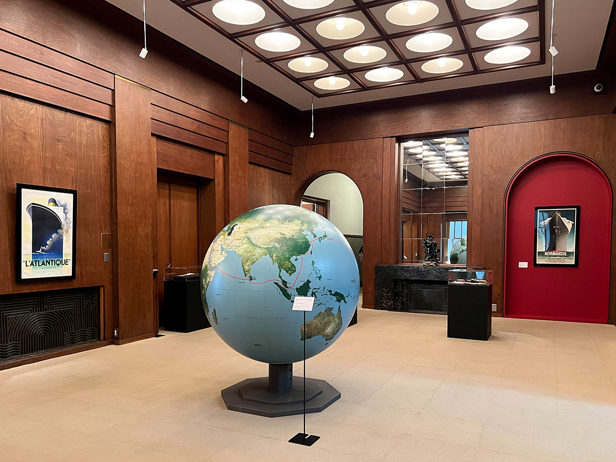 旧朝香宮邸である本館の大広間では、朝香宮夫妻の旅の軌跡を紹介していきます。 1922年10月、朝香宮鳩彦王は欧州の文化や芸術に触れながら見聞を広める「グランドツアー」に旅立ちました。 展示されている異国の情景を記した絵はがきや、航路が表された地球儀から、刺激に満ちた旅での生活を感じることができます。