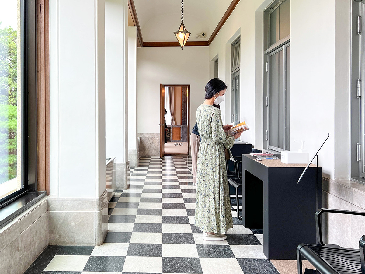 様々な側面から旅へと誘う作品に出会える今回の展覧会。旧朝香宮ではまるでタイムトラベルした様な空間を味わうことができます。旅のラウンジとして、2階のベランダもおすすめです。過去の旅の記憶を辿りながら、お気に入りの旅の本を見つけてみては。