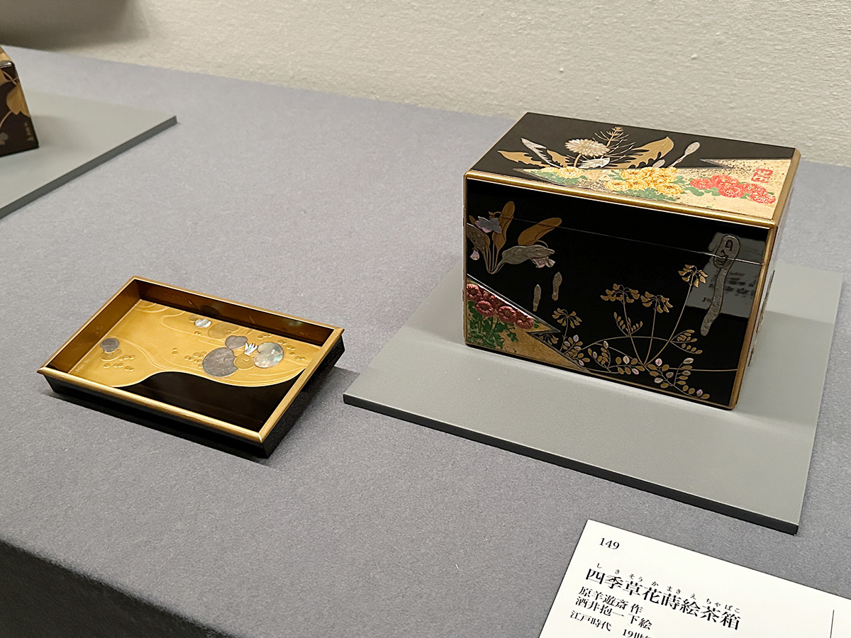 MOA美術館、三井記念美術館、徳川美術館の3館が共同で開催し、蒔絵の全貌に迫る本展。三井記念美術館では、国宝7件、重文32件を含む計127件が展示されています。